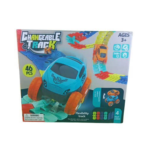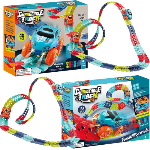 Magic Race Zero Gravity Car Track 46-Piece Set with LED Light-Up Flexible Tracks 60